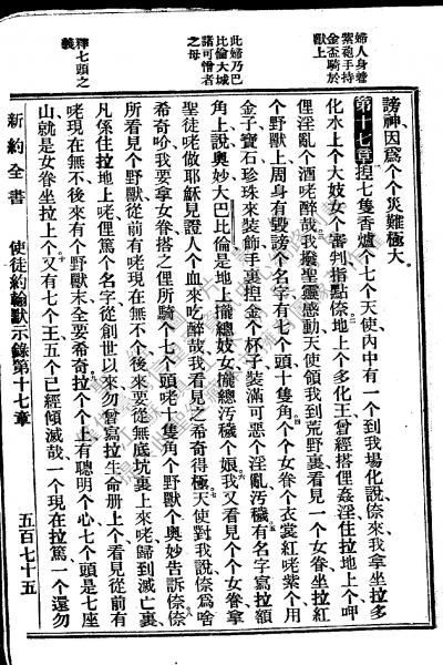 1922年新约全书 启示录 17 章 1 节到 17 章 10 节