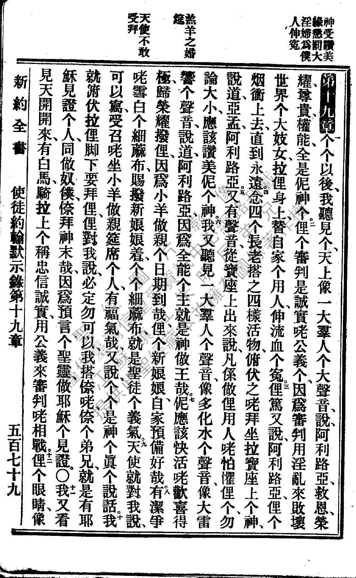 1922年新约全书 启示录 19 章 1 节到 19 章 12 节