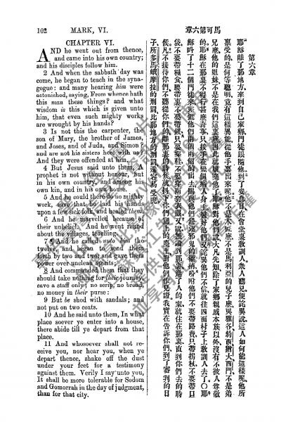 1885年新约全书 马可福音 6 章 1 节到 6 章 11 节
