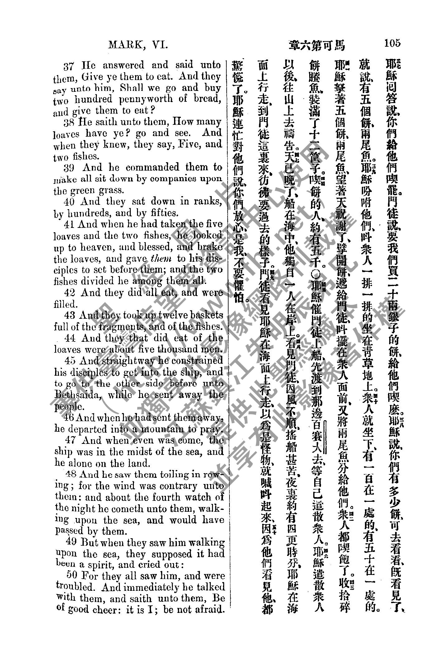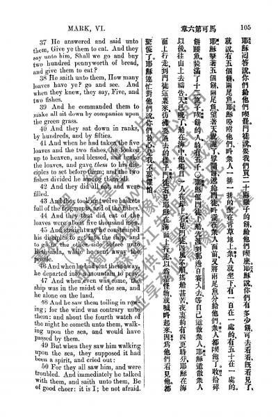 1885年新约全书 马可福音 6 章 37 节到 6 章 50 节