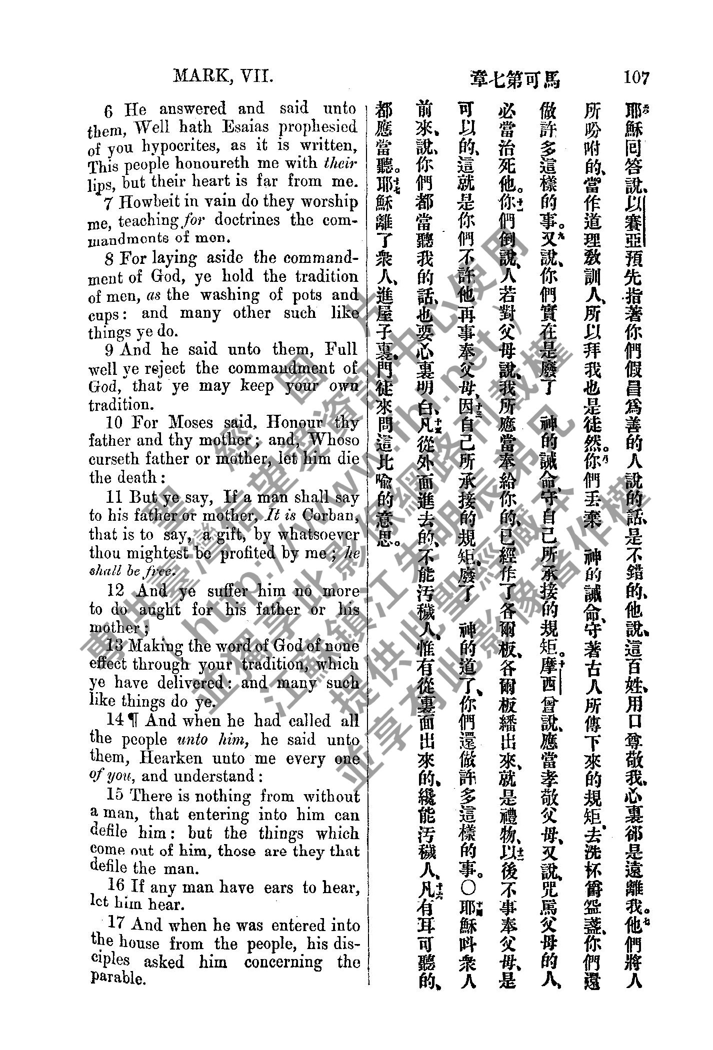 1885年新约全书 马可福音 7 章 6 节到 7 章 17 节