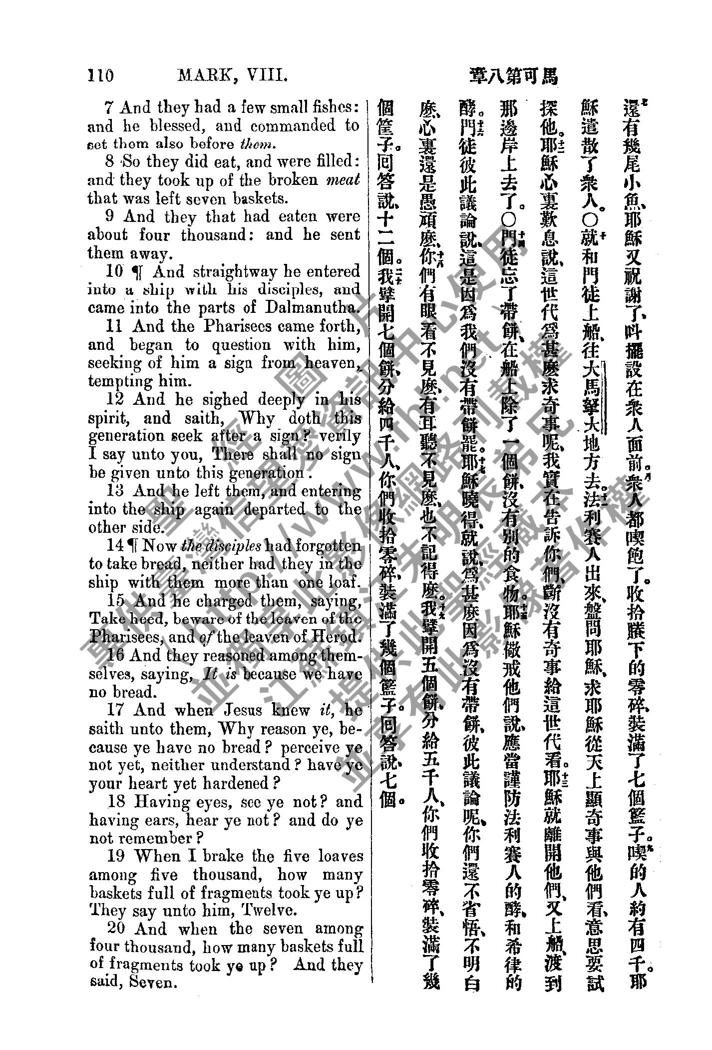 1885年新约全书 马可福音 8 章 7 节到 8 章 20 节