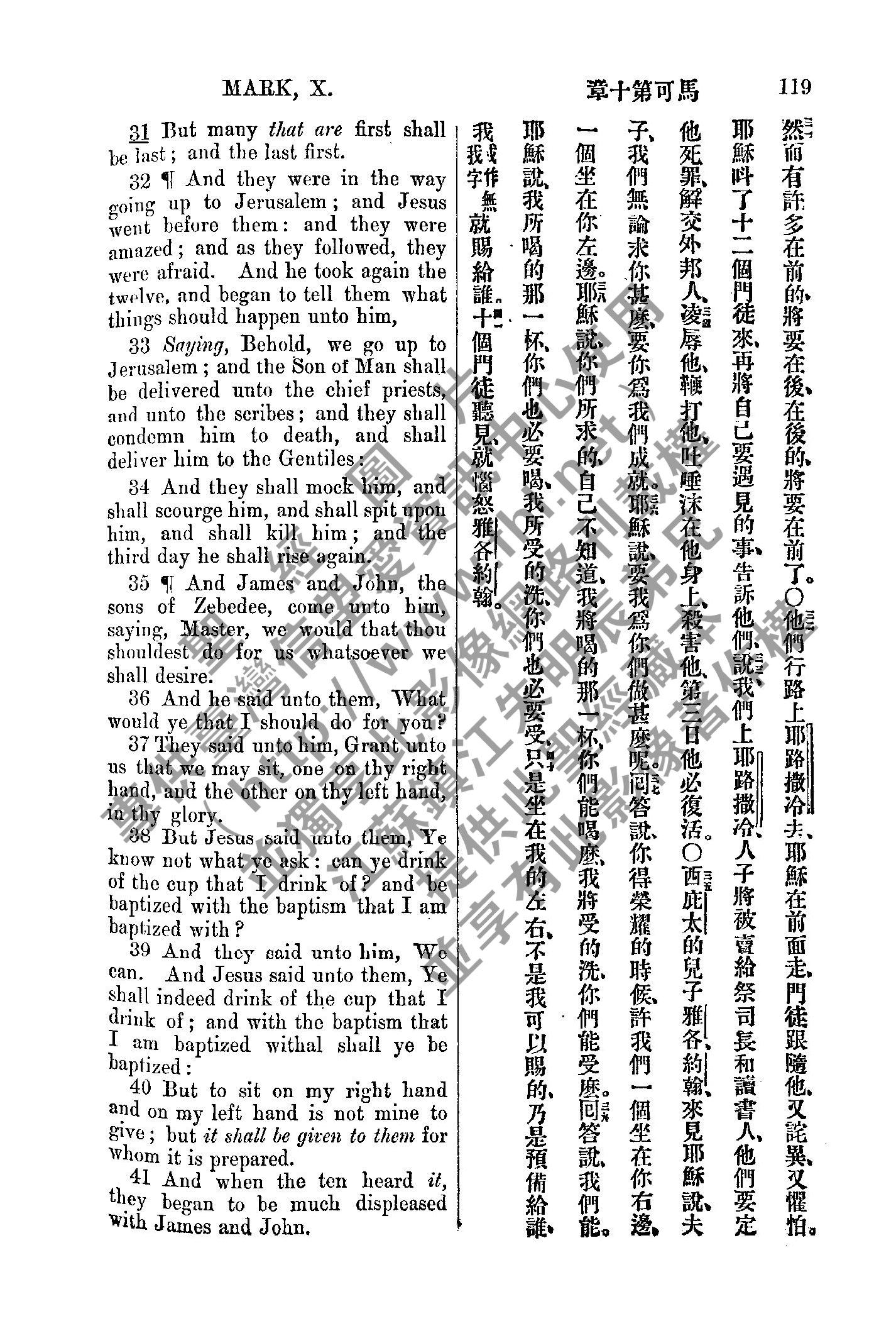 1885年新约全书 马可福音 10 章 31 节到 10 章 41 节