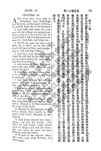 1885年新约全书 马可福音 11 章 1 节到 11 章 12 节
