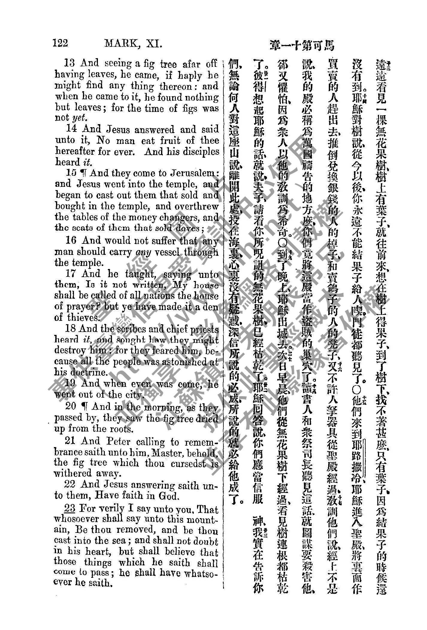 1885年新约全书 马可福音 11 章 13 节到 11 章 23 节