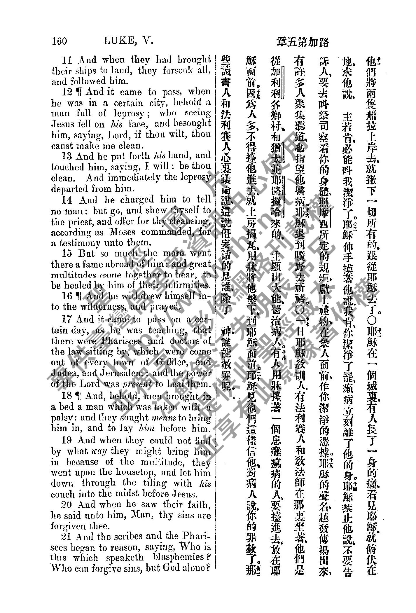 1885年新约全书 路加福音 5 章 11 节到 5 章 21 节