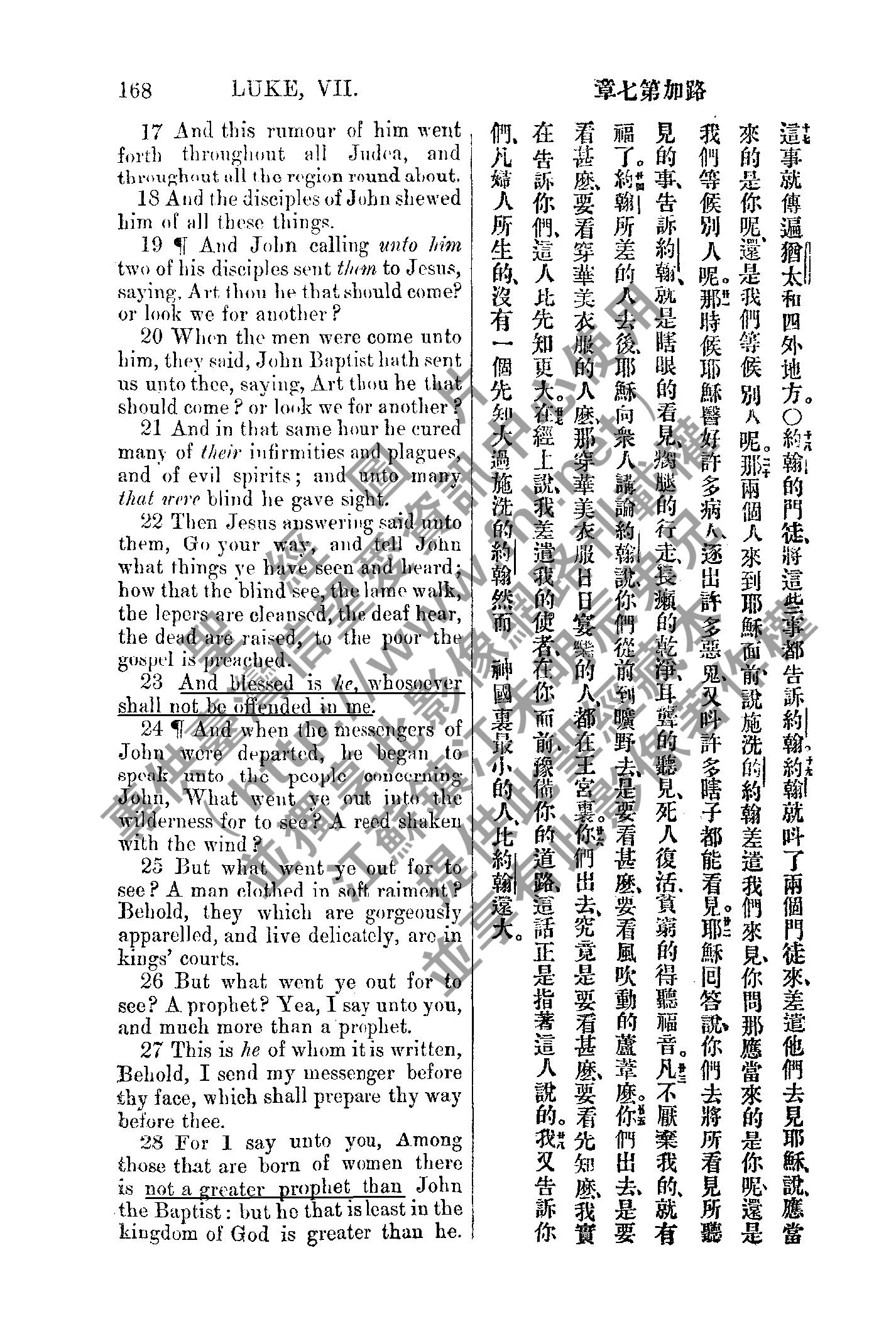 1885年新约全书 路加福音 7 章 17 节到 7 章 28 节