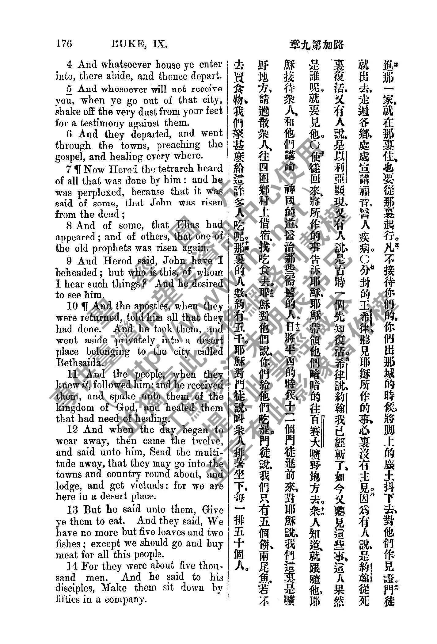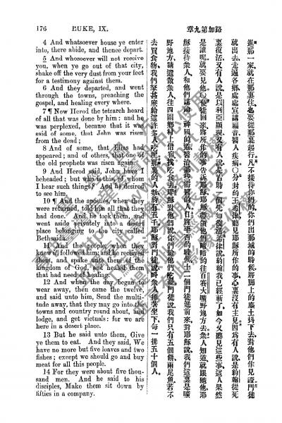 1885年新约全书 路加福音 9 章 4 节到 9 章 14 节