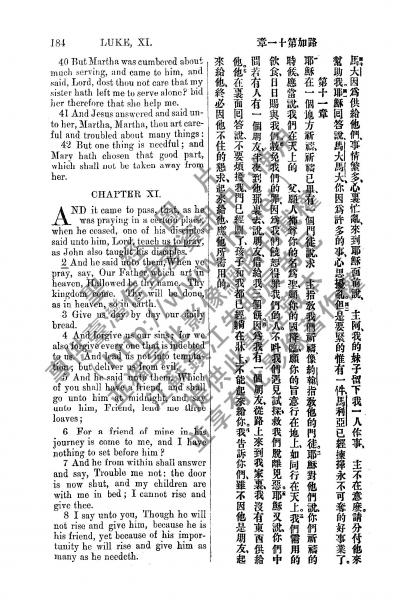 1885年新约全书 路加福音 10 章 40 节到 11 章 8 节