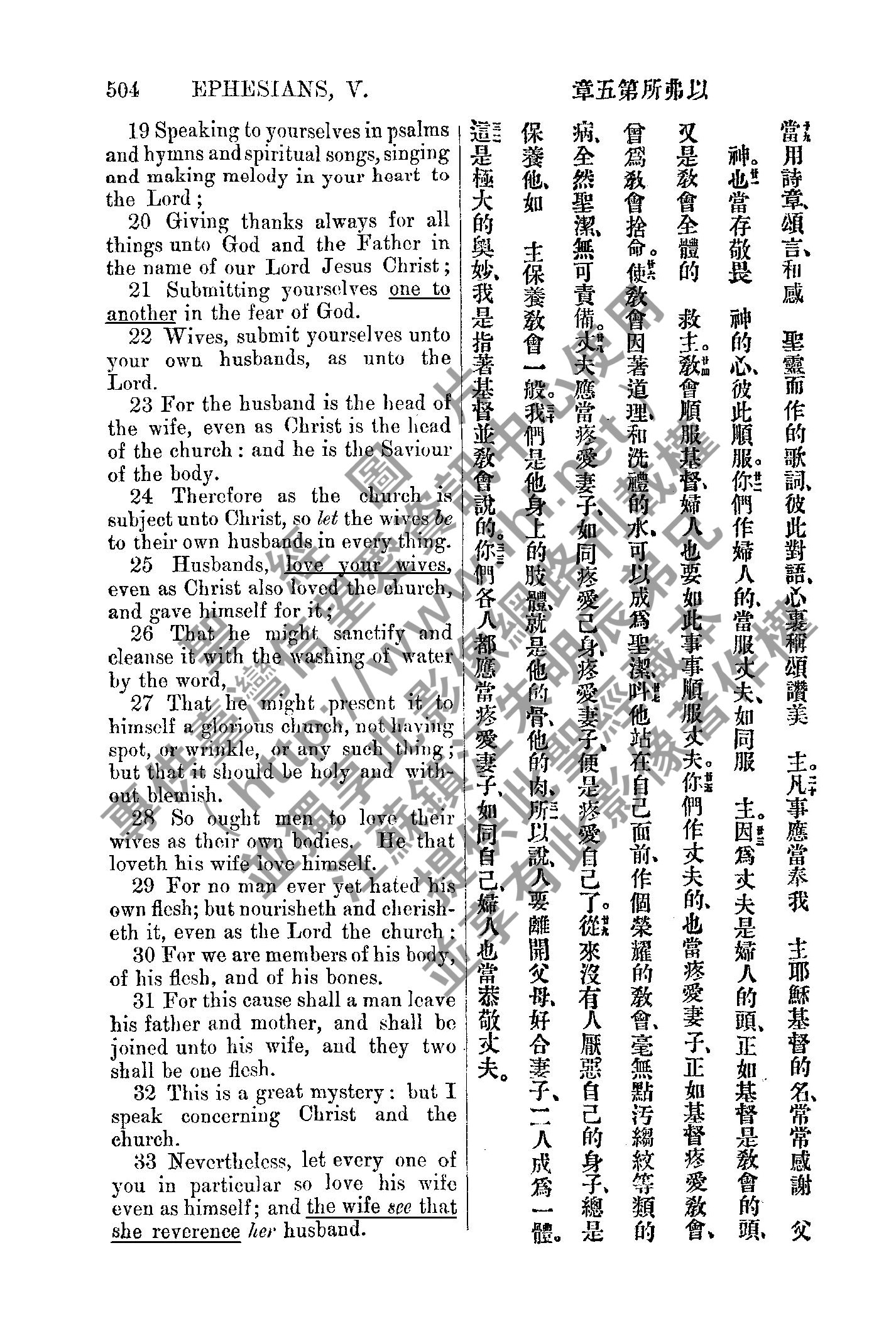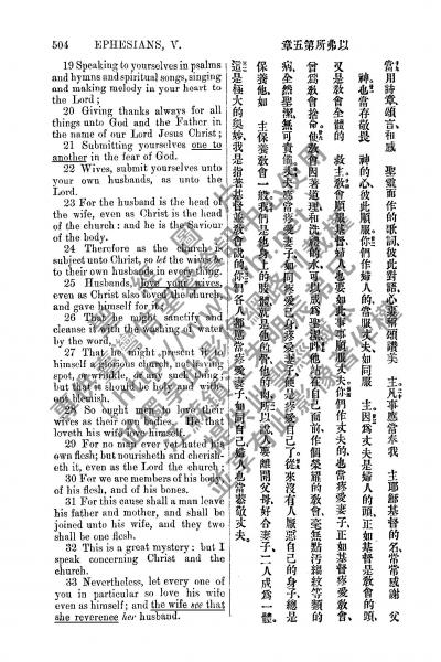 1885年新约全书 以弗所书 5 章 19 节到 5 章 33 节