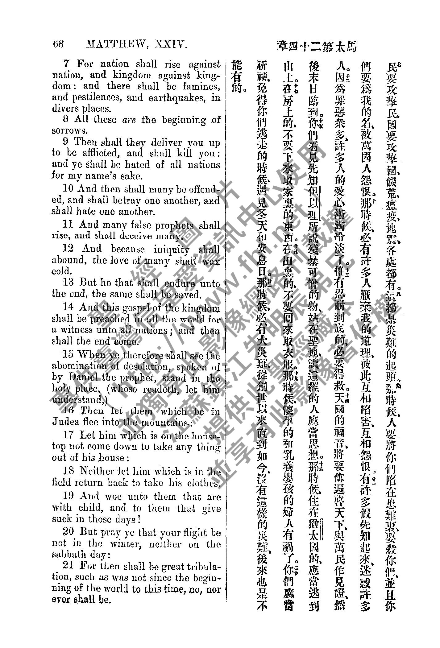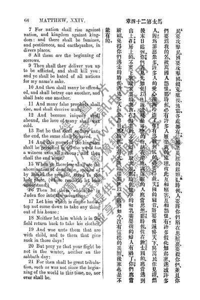 1885年新约全书 马太福音 24 章 7 节到 24 章 21 节