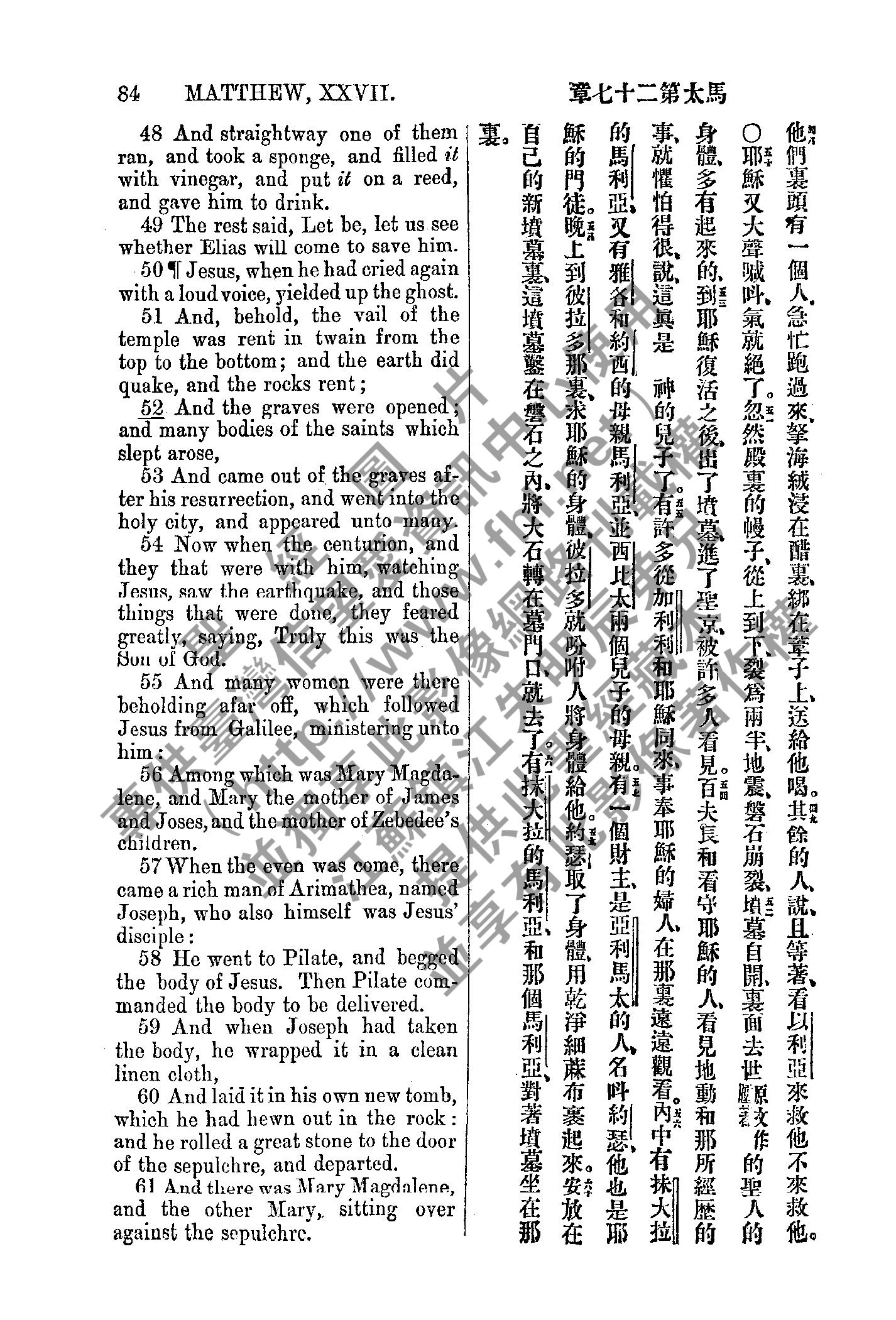 1885年新约全书 马太福音 27 章 48 节到 27 章 61 节