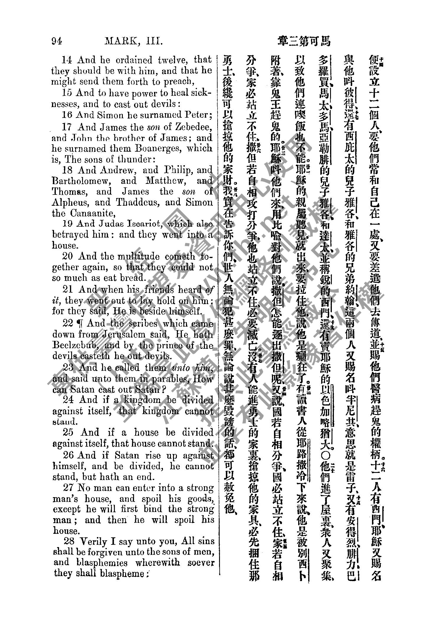 1885年新约全书 马可福音 3 章 14 节到 3 章 28 节