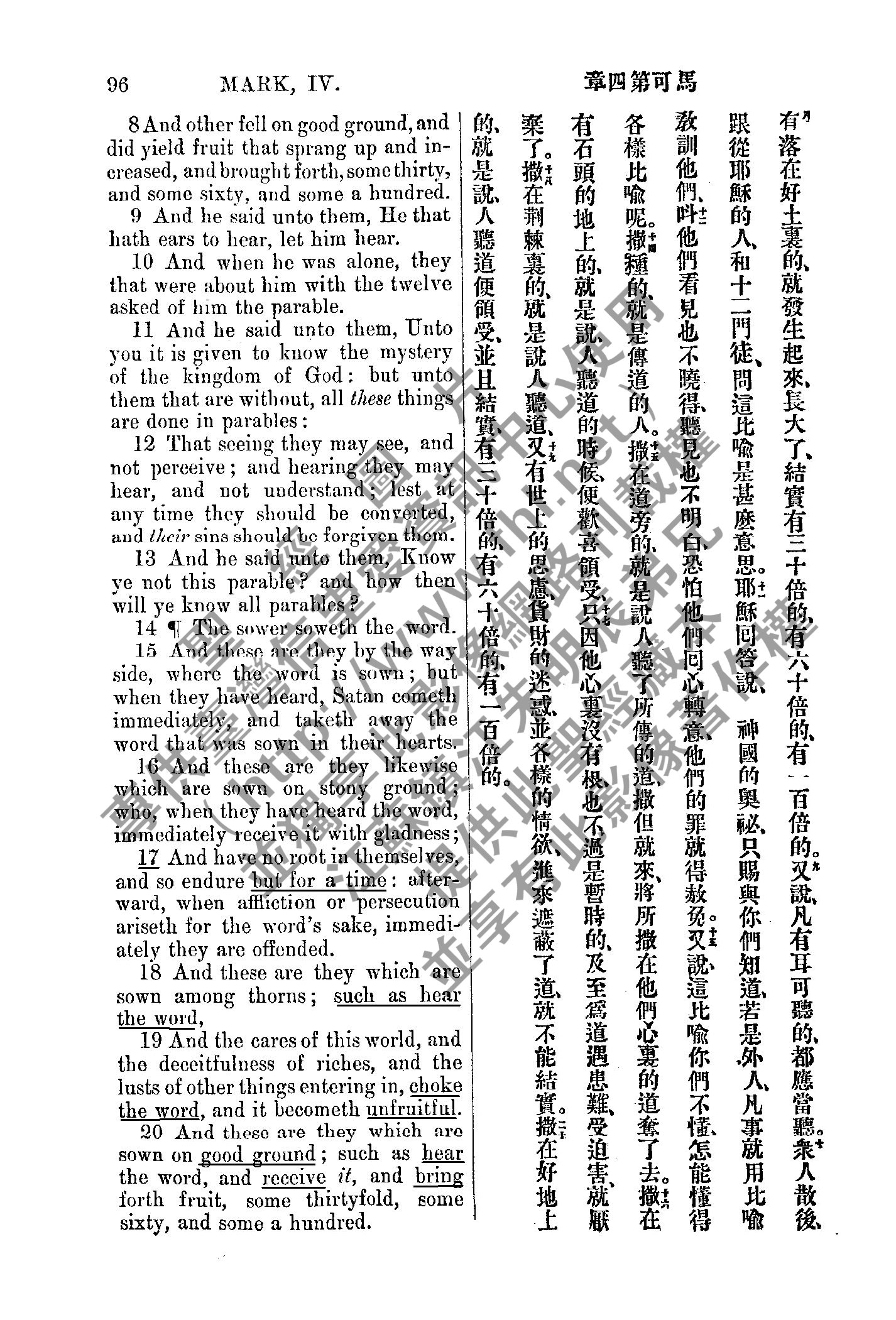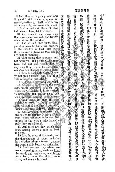 1885年新约全书 马可福音 4 章 8 节到 4 章 20 节