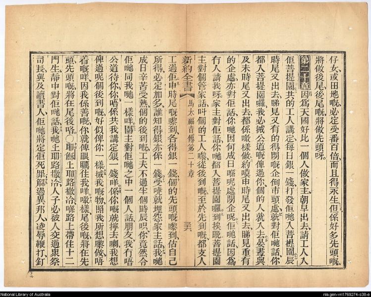 1883年新約四福音 馬太福音 19 章 30 節到 20 章 19 節