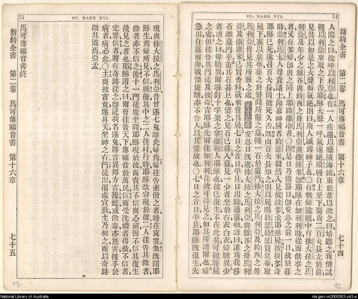 1864年新約全書 馬可福音 15 章 36 節到 16 章 20 節