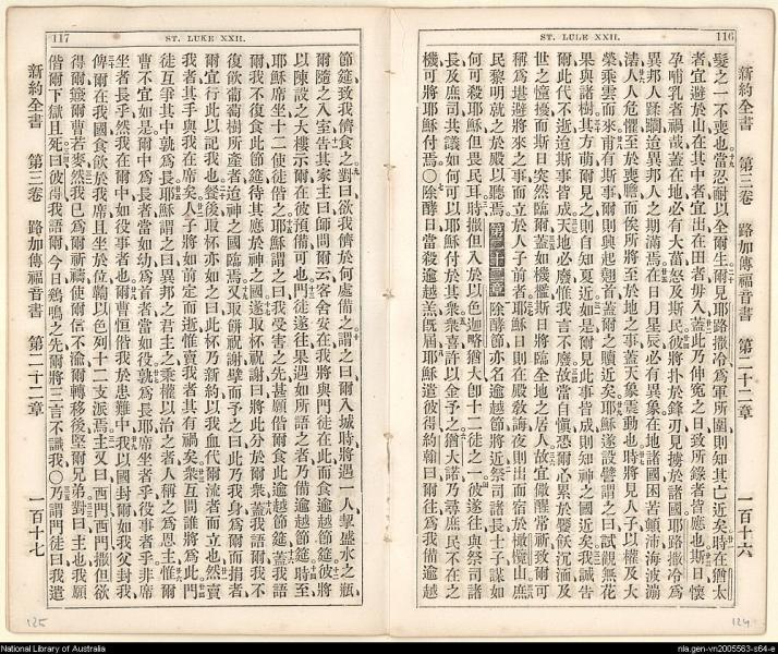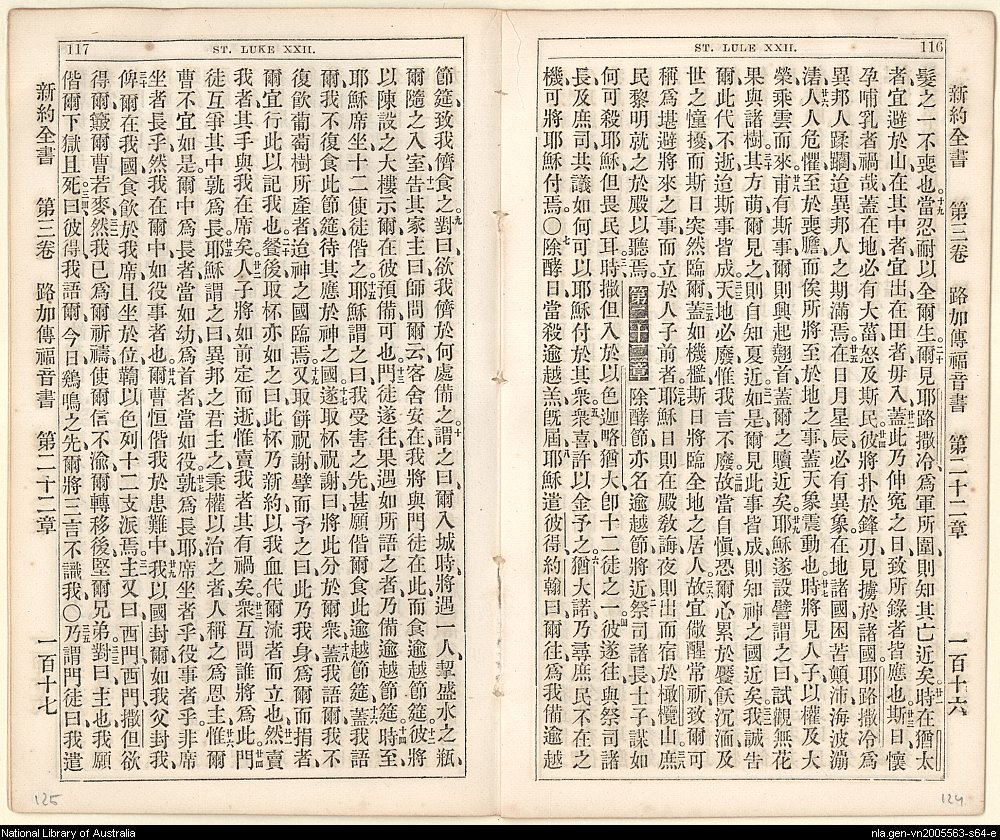 1864年新約全書 路加福音 21 章 19 節到 22 章 35 節