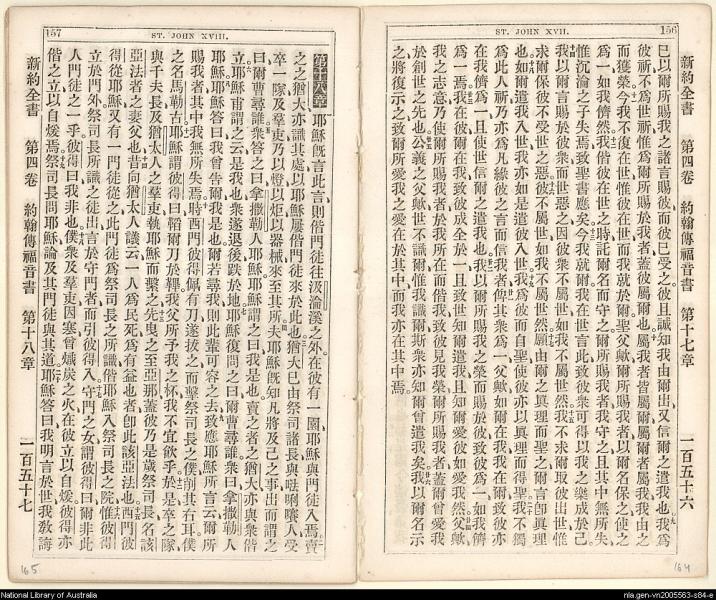 1864年新約全書 約翰福音 17 章 9 節到 18 章 20 節
