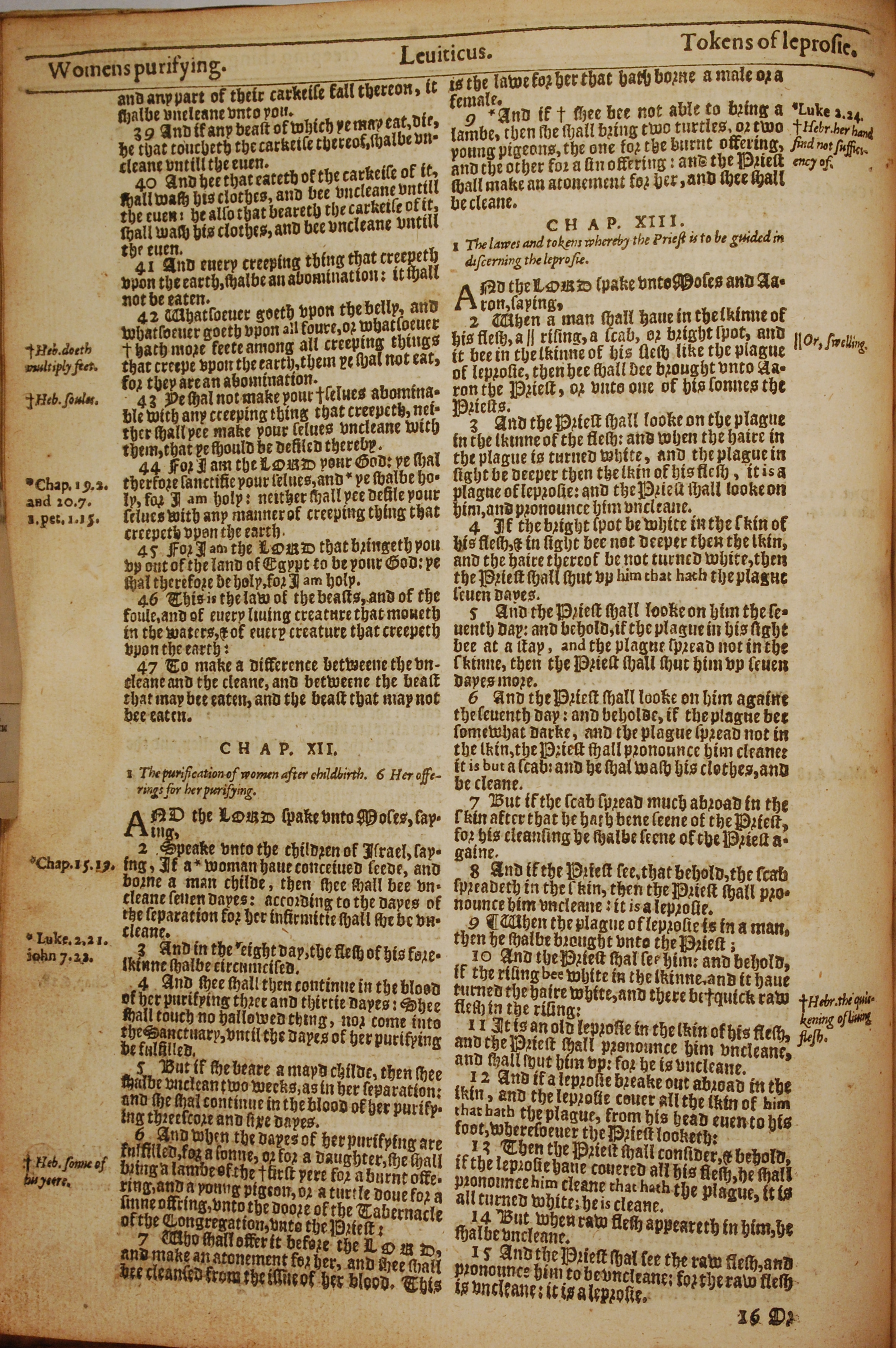 1613年The Genealogies recorded in the sacred scriptures 利未記 11 章 39 節到 13 章 15 節