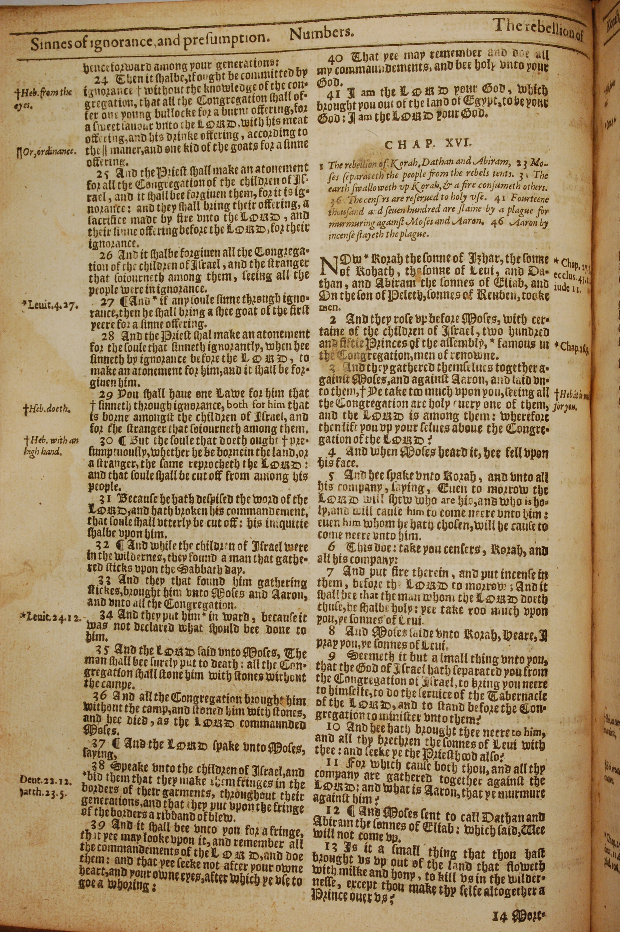 1613年The Genealogies recorded in the sacred scriptures 民數記 15 章 24 節到 16 章 13 節