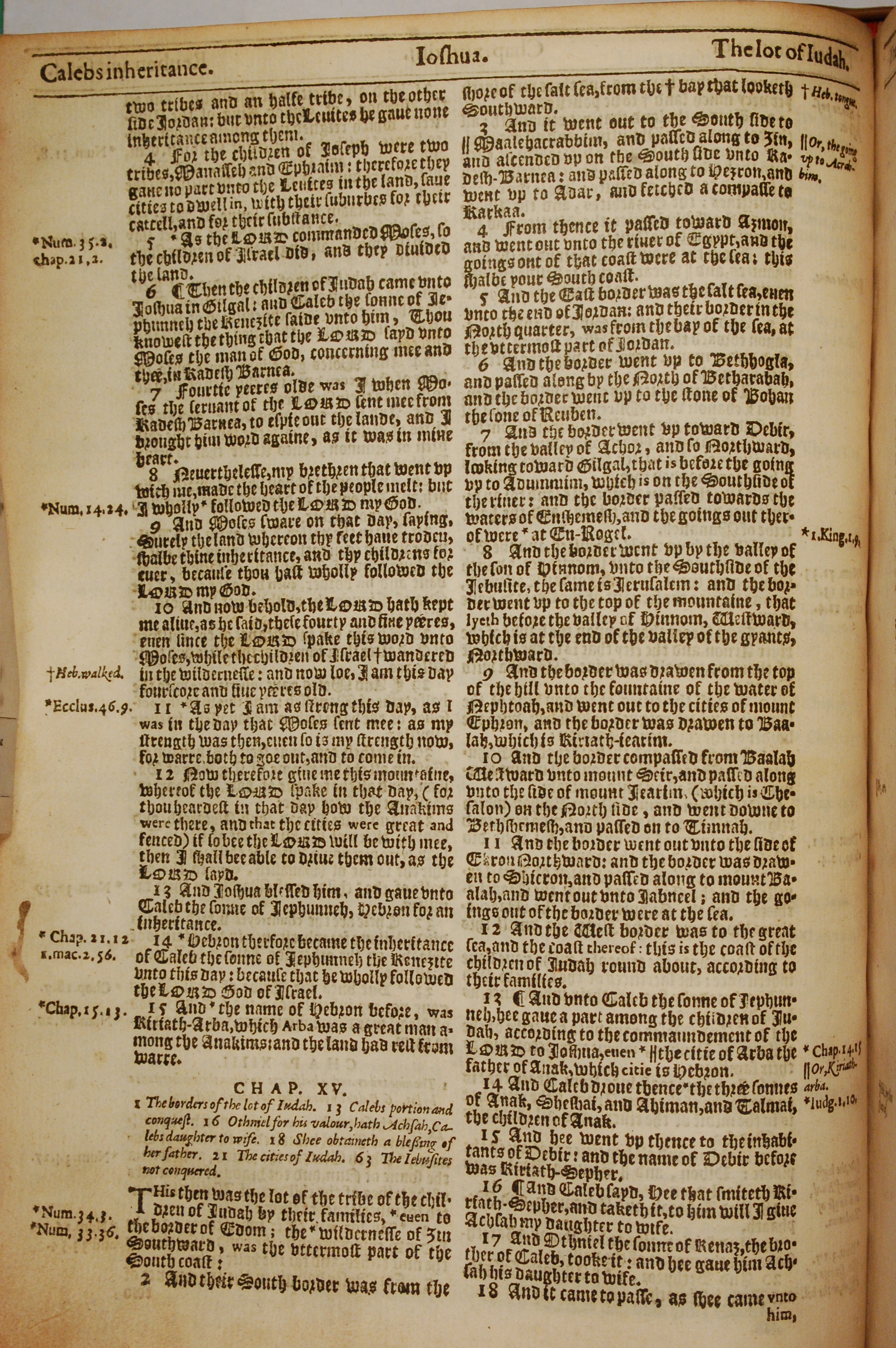 1613年The Genealogies recorded in the sacred scriptures 約書亞記 14 章 4 節到 15 章 18 節