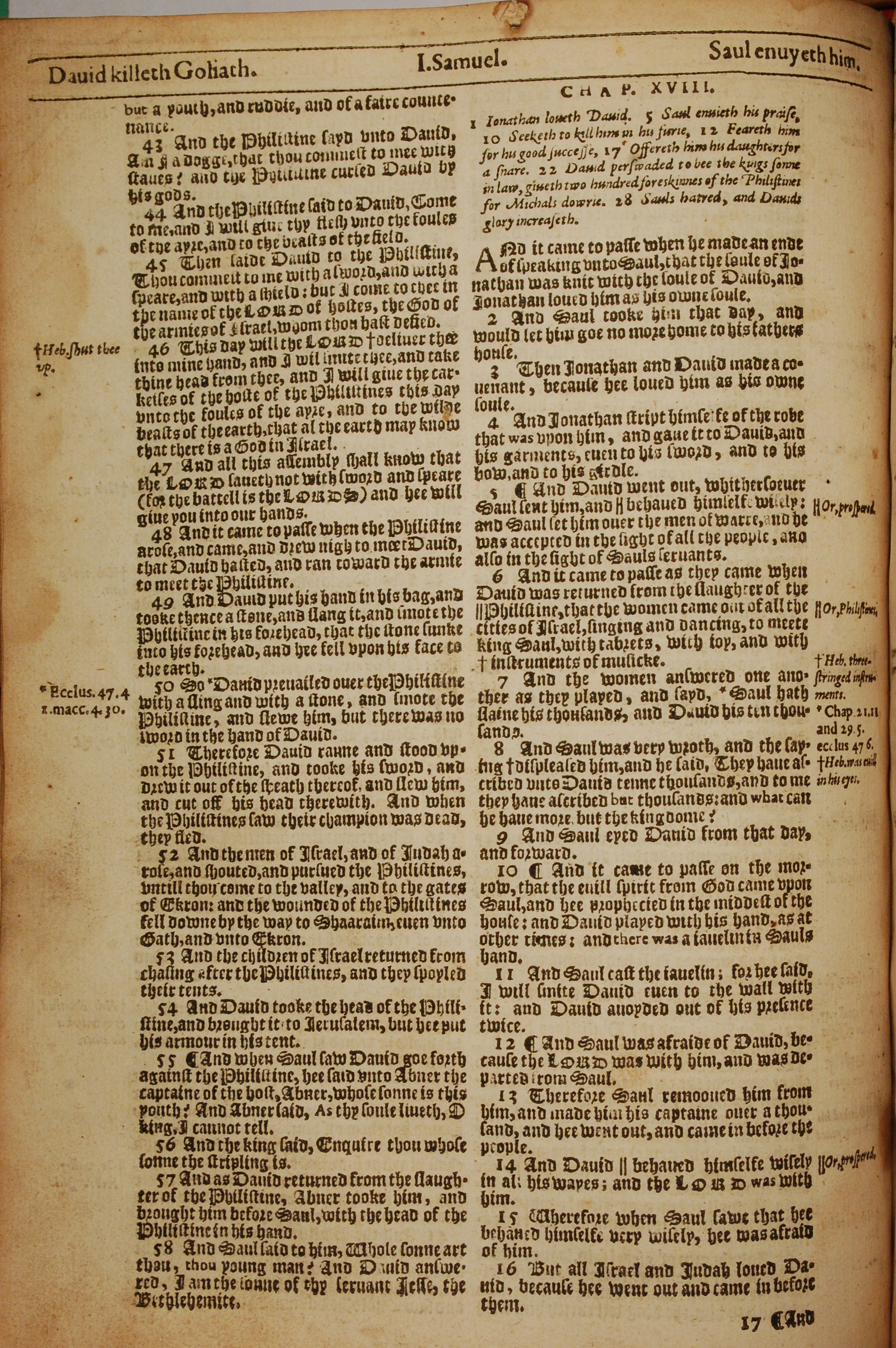 1613年The Genealogies recorded in the sacred scriptures 撒母耳記上 17 章 43 節到 18 章 16 節