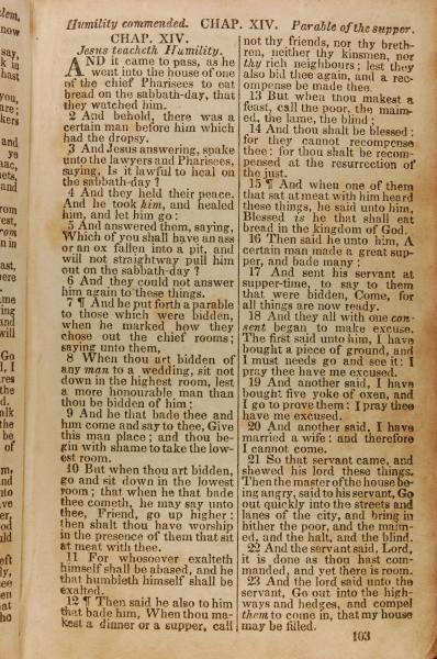1843年The New Testament 路加福音 14 章 1 節到 14 章 23 節