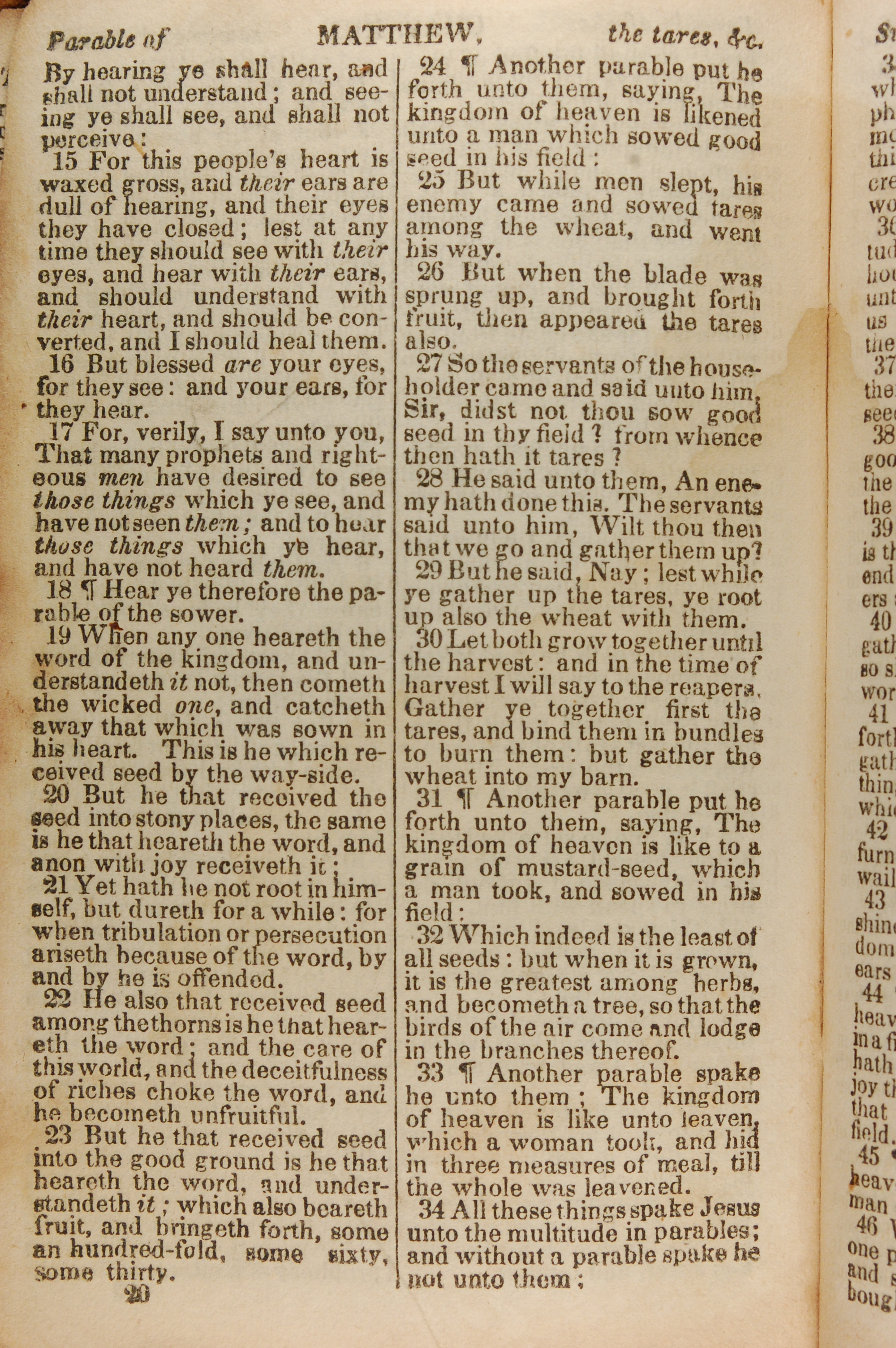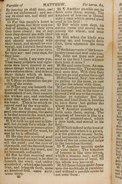 1843年The New Testament 馬太福音 13 章 15 節到 13 章 34 節