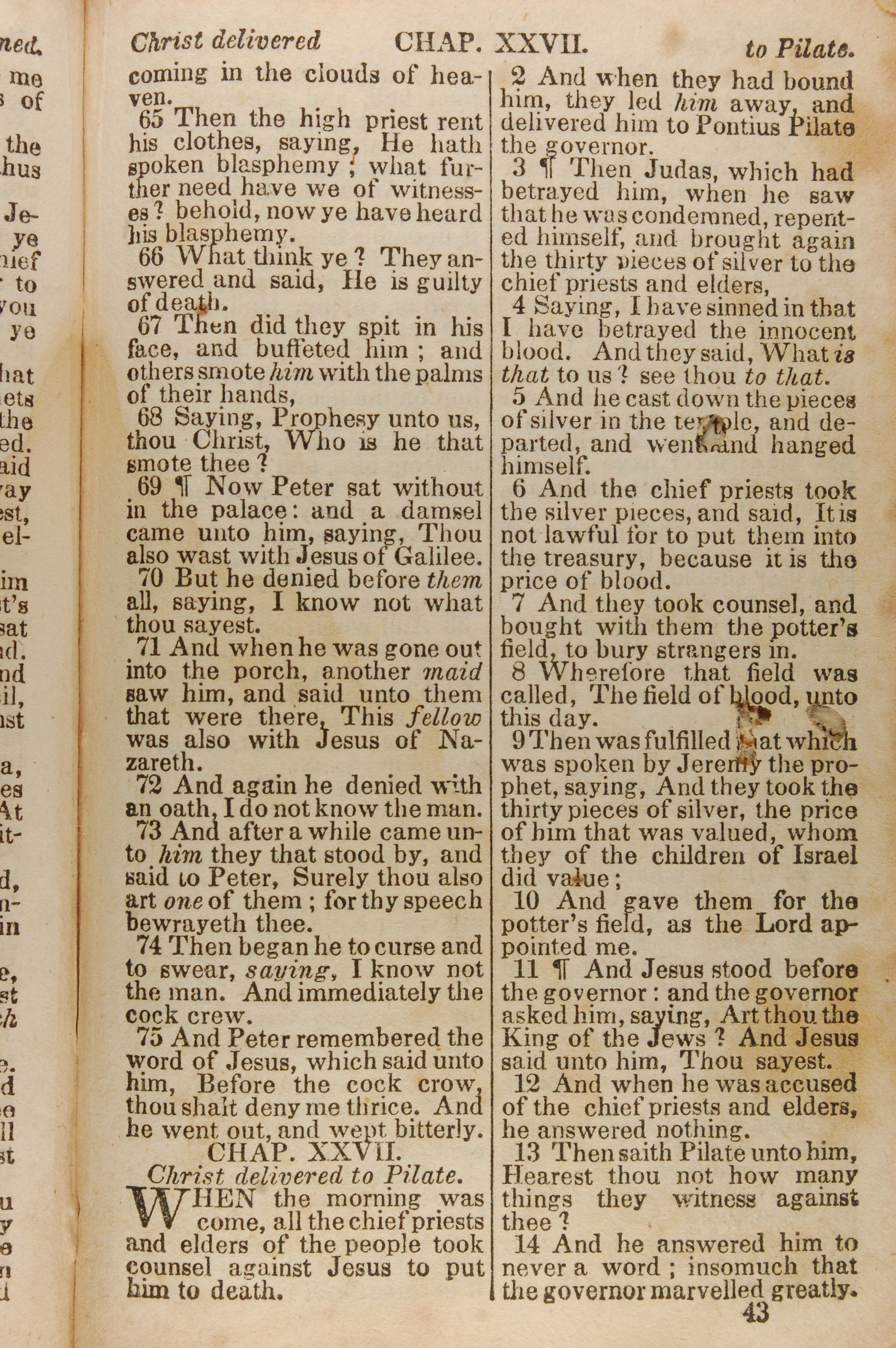 1843年The New Testament 馬太福音 26 章 65 節到 27 章 14 節