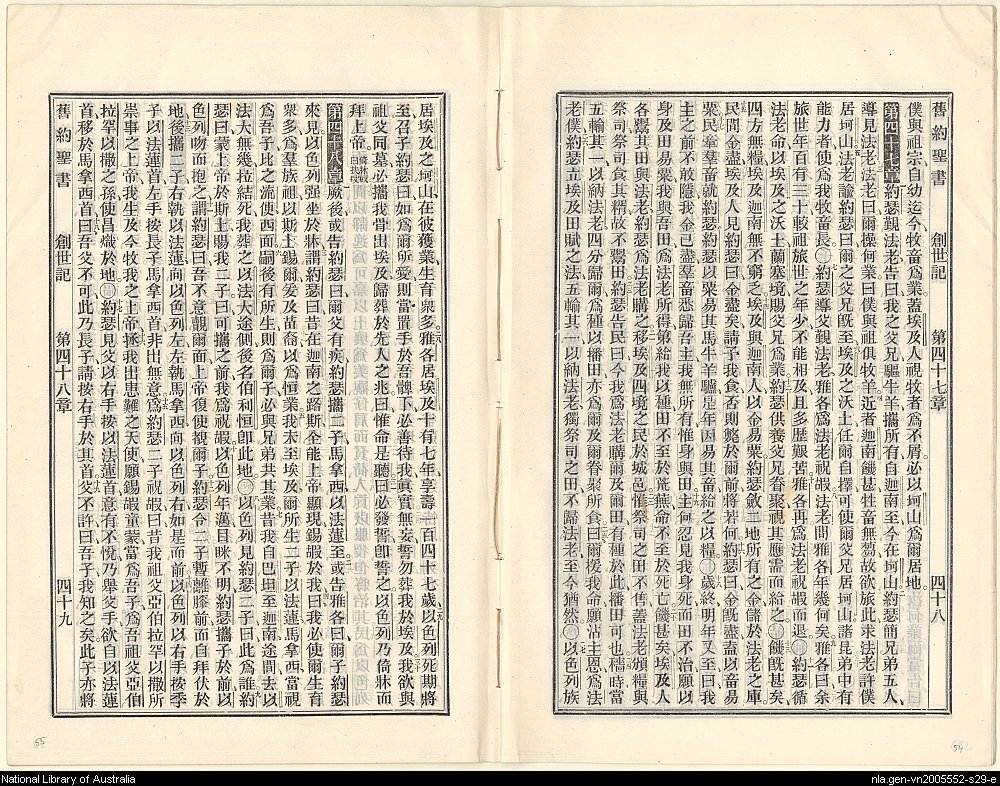 1908年新舊約全書(委辦譯本) 創世記 47 章 1 節到 48 章 19 節