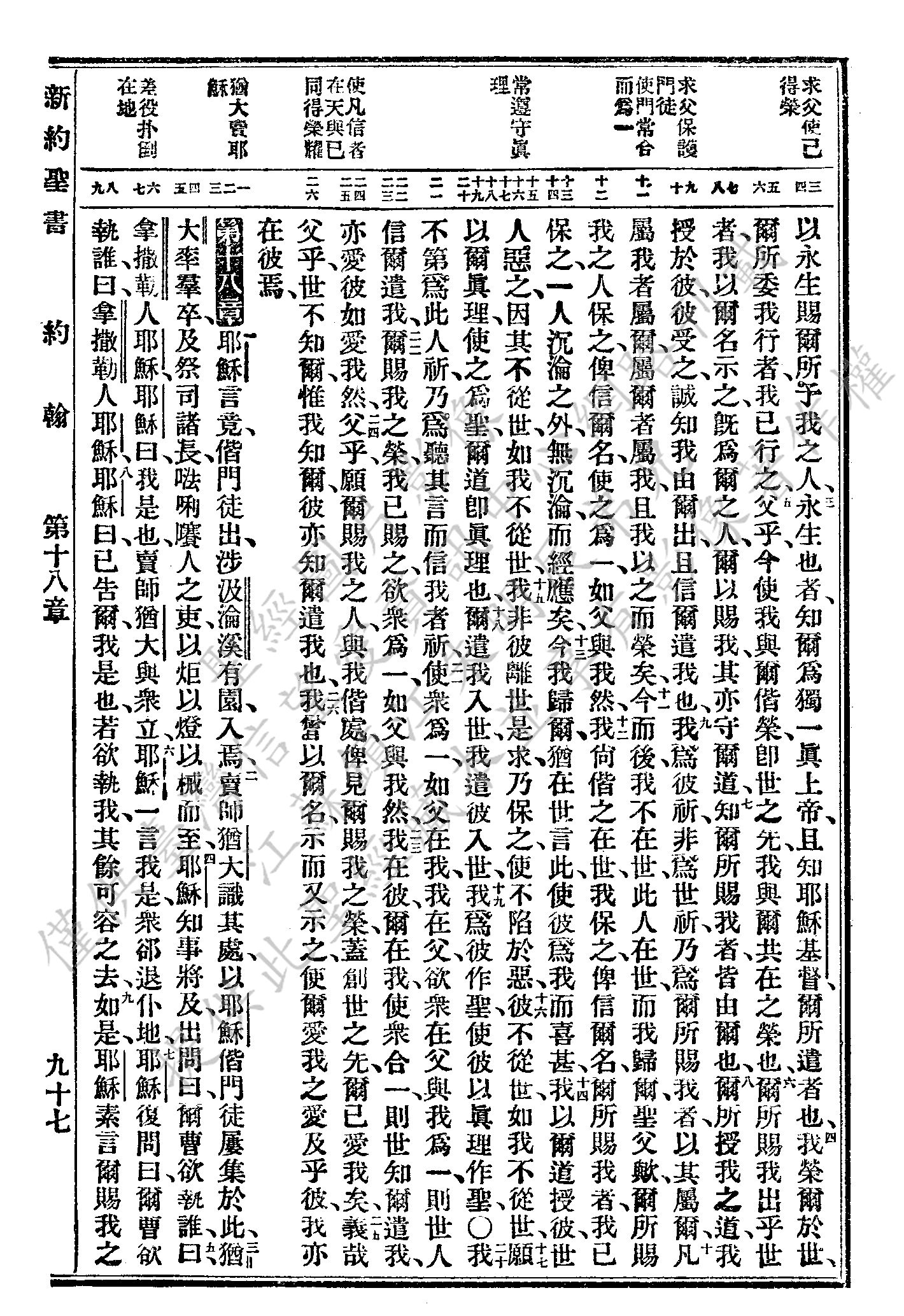 1927年新舊約全書(委辦譯本) 約翰福音 17 章 3 節到 18 章 9 節