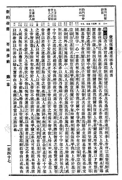 1927年新舊約全書(委辦譯本) 哥林多前書 1 章 1 節到 1 章 31 節