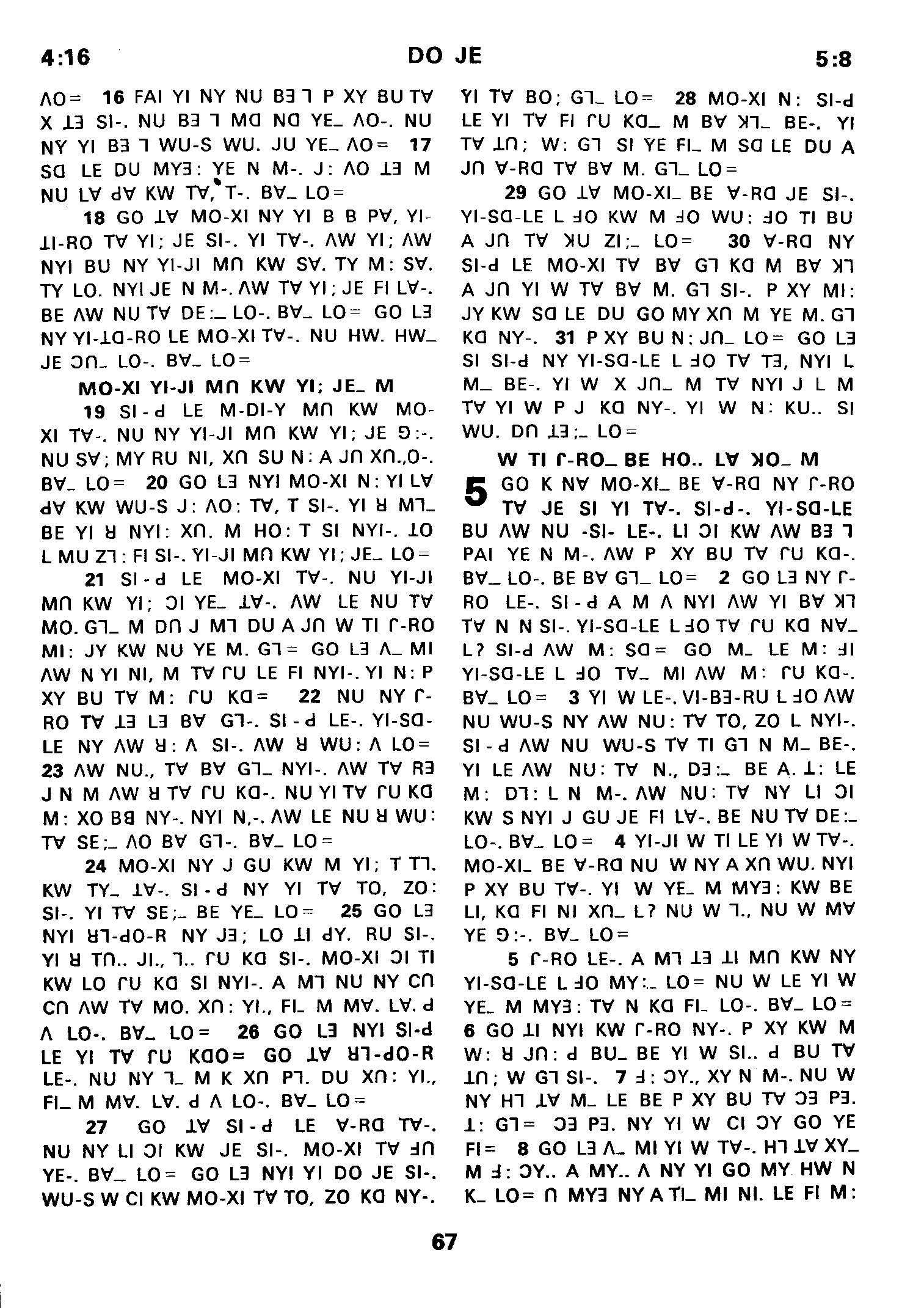 1980年傈僳語聖經全書 出埃及記 4 章 16 節到 5 章 8 節