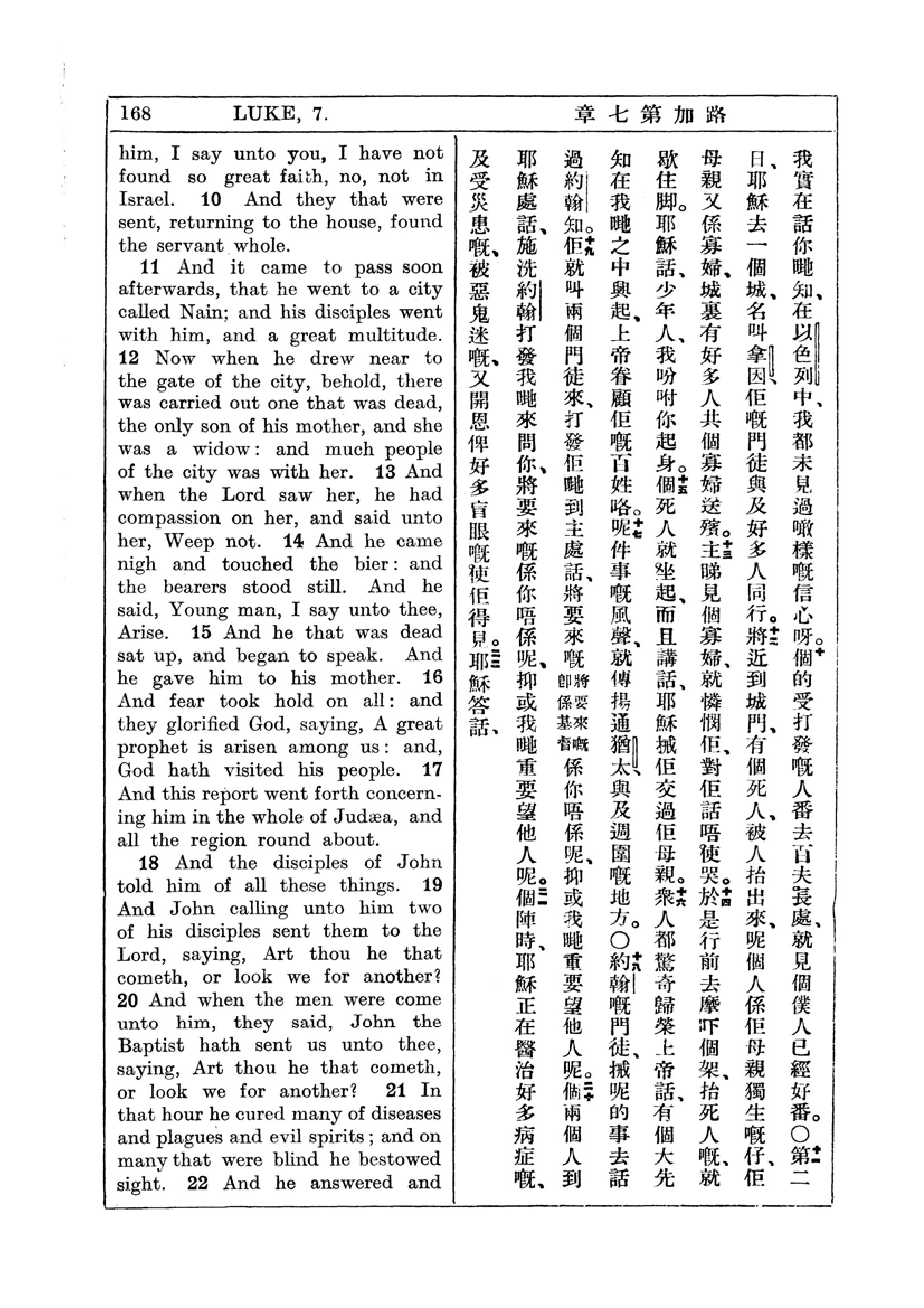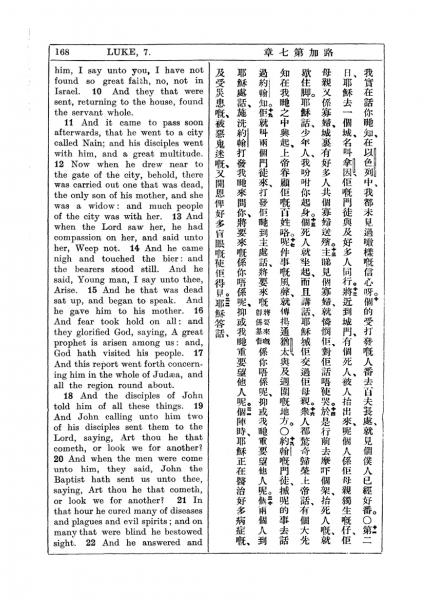 1927年新約全書(中英對照) 路加福音 7 章 10 節到 7 章 21 節