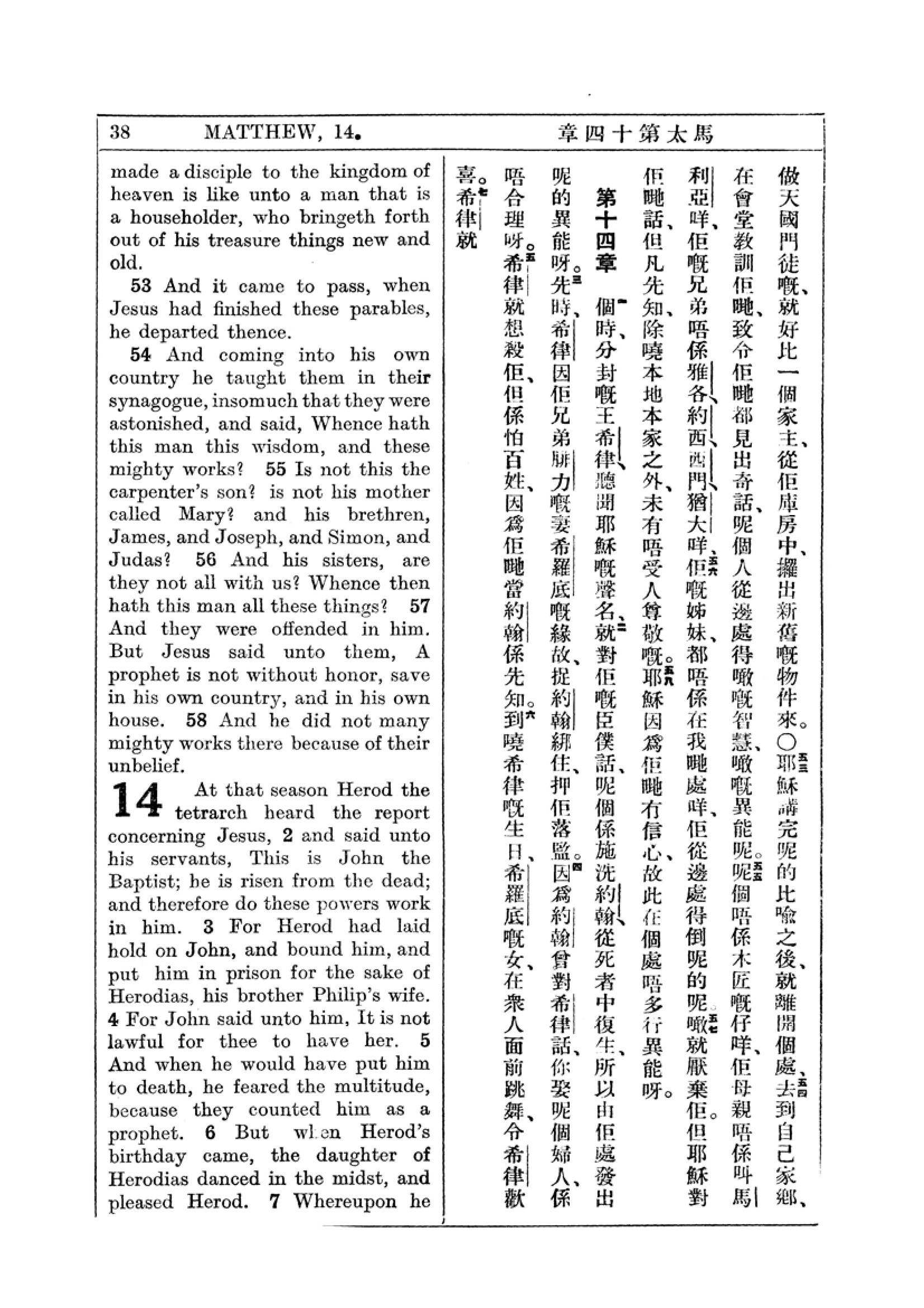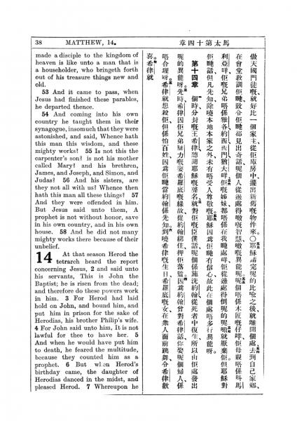 1927年新約全書(中英對照) 馬太福音 13 章 53 節到 14 章 7 節