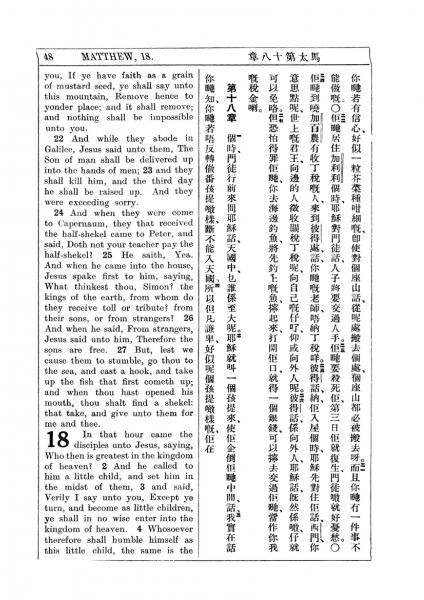 1927年新約全書(中英對照) 馬太福音 17 章 21 節到 18 章 4 節
