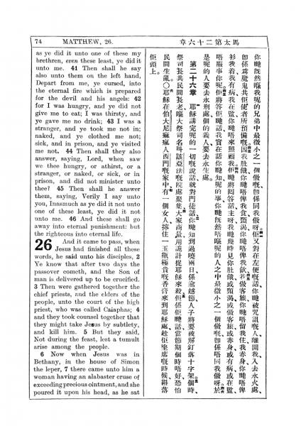 1927年新約全書(中英對照) 馬太福音 25 章 41 節到 26 章 7 節