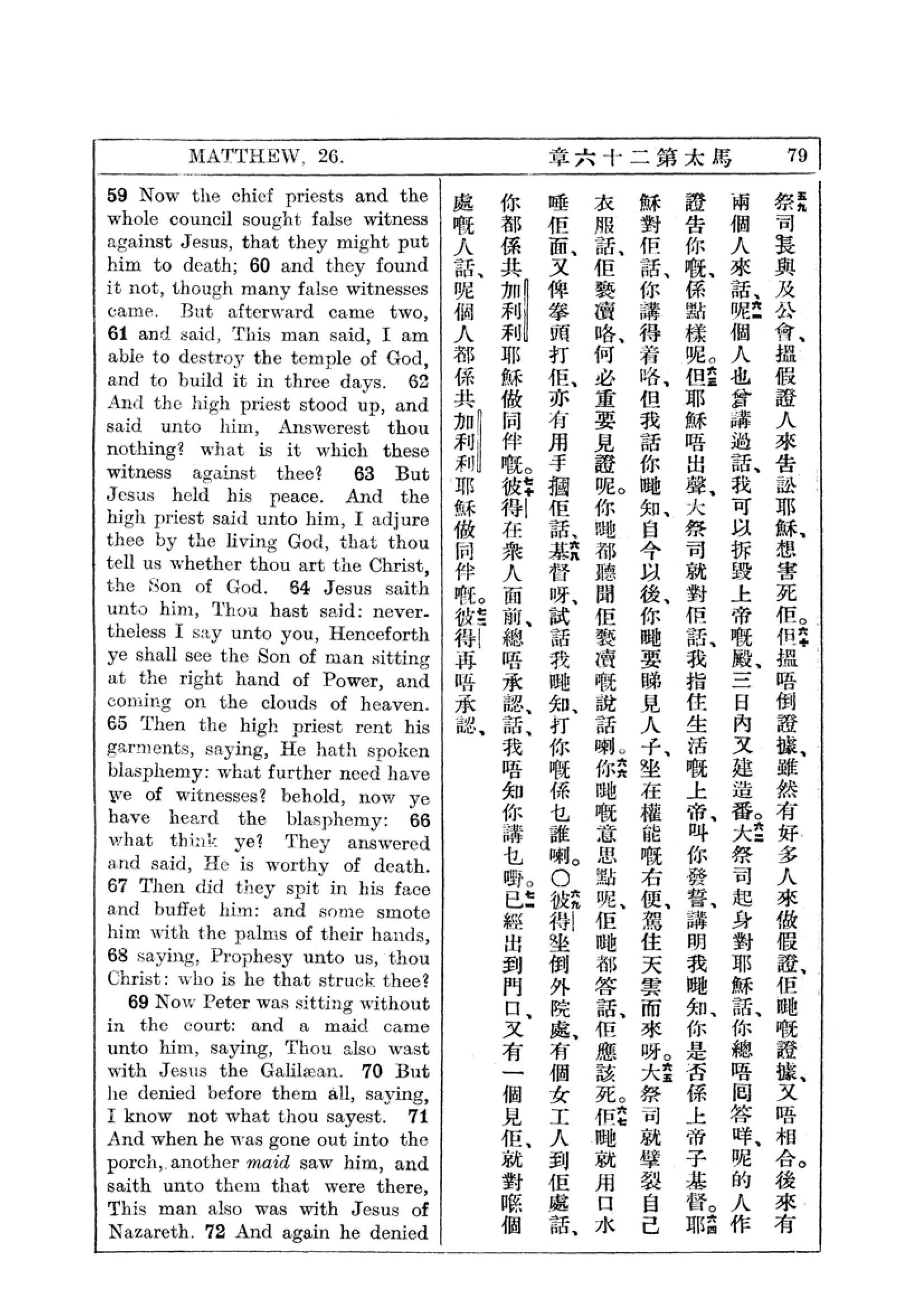 1927年新約全書(中英對照) 馬太福音 26 章 59 節到 26 章 72 節