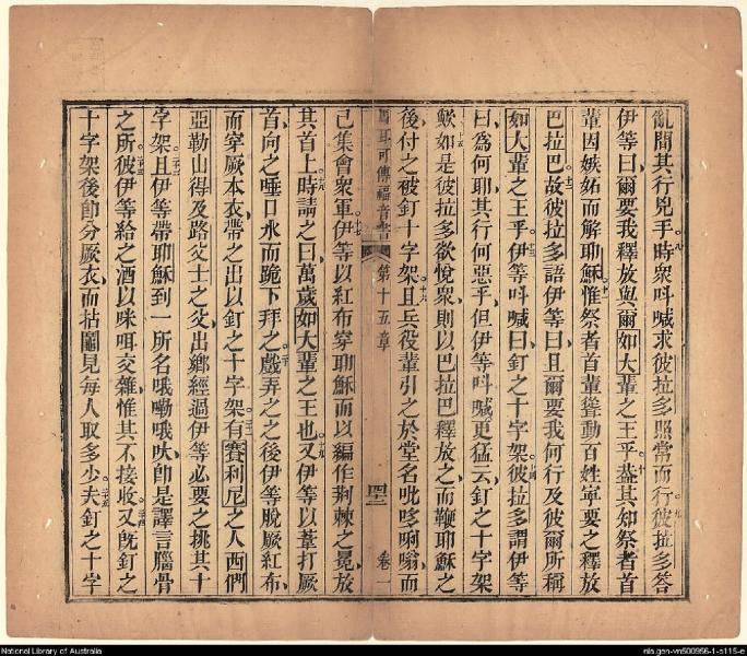1826年我等救世主耶穌新遺詔書(新約全書) 馬可福音 15 章 7 節到 15 章 25 節