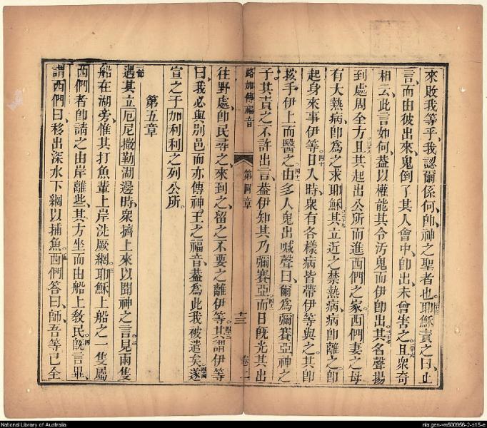 1826年我等救世主耶穌新遺詔書(新約全書) 路加福音 4 章 34 節到 5 章 5 節
