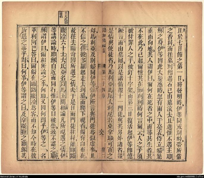 1826年我等救世主耶穌新遺詔書(新約全書) 路加福音 24 章 1 節到 24 章 19 節