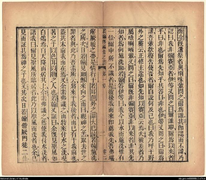 1826年我等救世主耶穌新遺詔書(新約全書) 約翰福音 1 章 19 節到 1 章 35 節