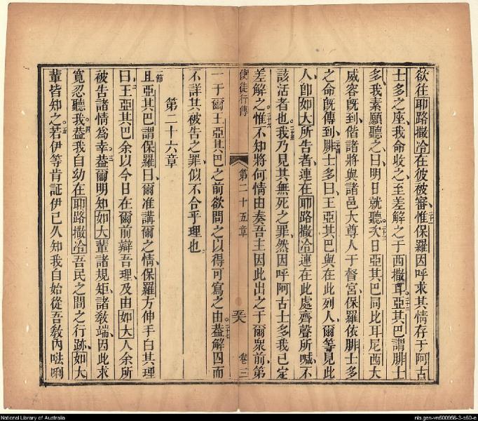 1826年我等救世主耶穌新遺詔書(新約全書) 使徒行傳 25 章 20 節到 26 章 5 節