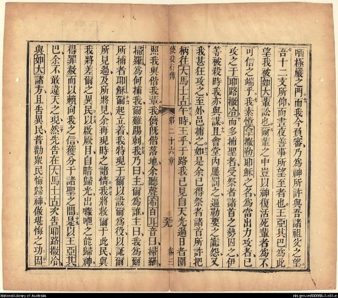 1826年我等救世主耶穌新遺詔書(新約全書) 使徒行傳 26 章 5 節到 26 章 21 節