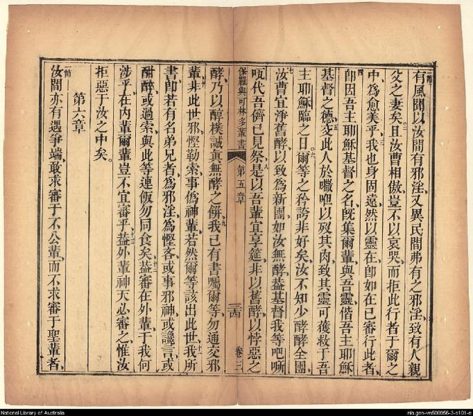 1826年我等救世主耶穌新遺詔書(新約全書) 哥林多前書 5 章 1 節到 6 章 1 節