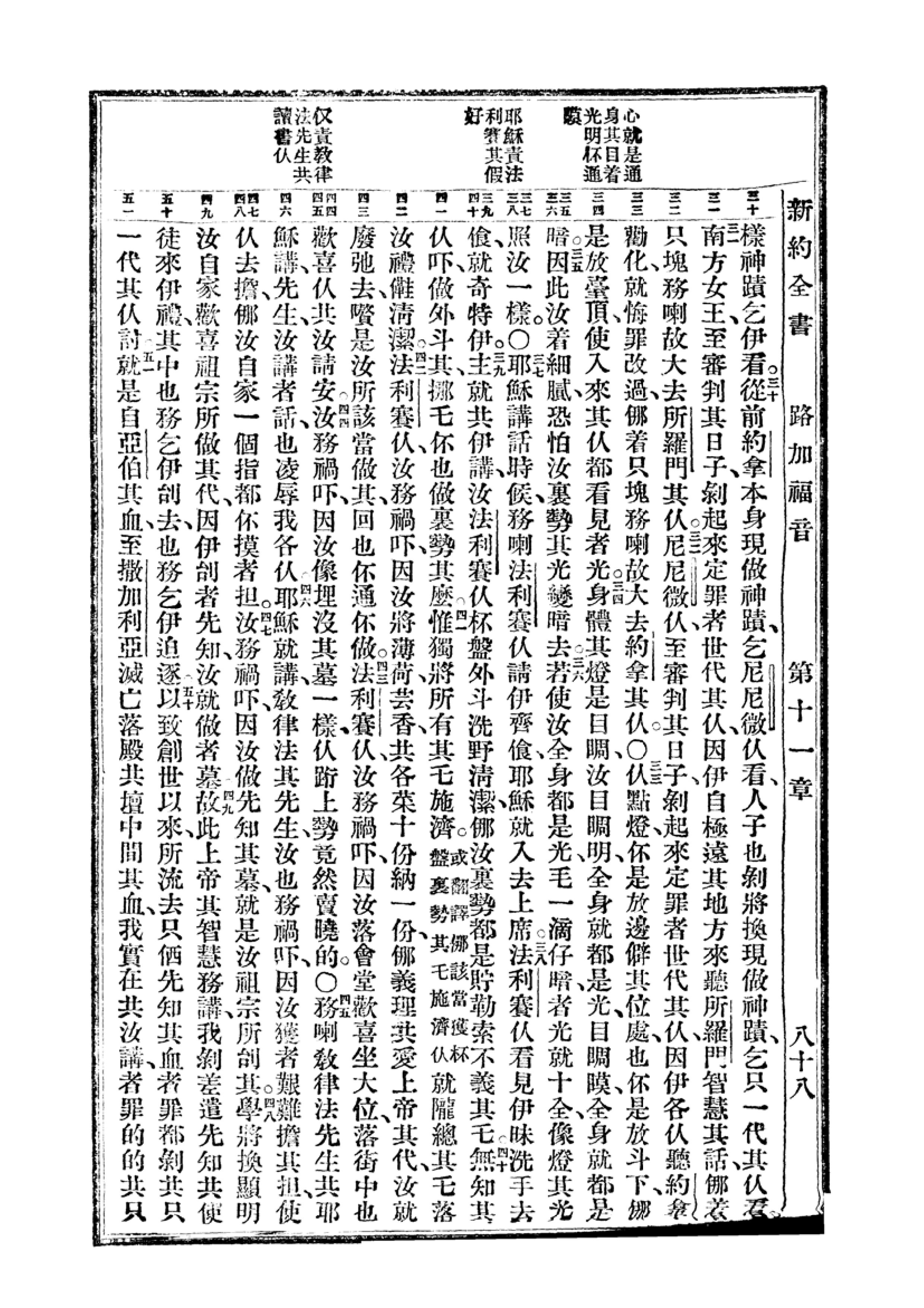 1940年福州土白《新舊約全書》 路加福音 11 章 30 節到 11 章 51 節