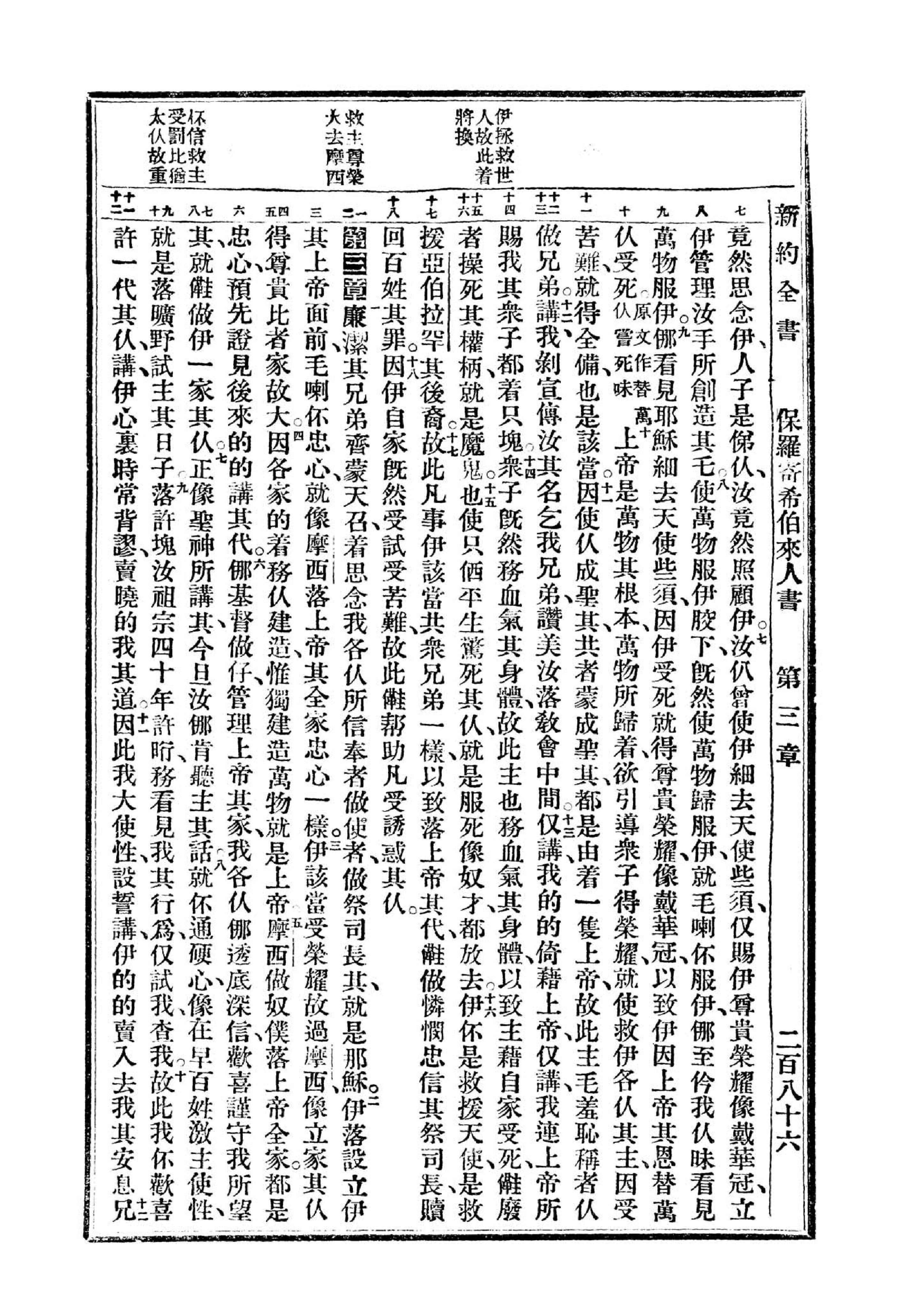 1940年福州土白《新舊約全書》 希伯來書 2 章 7 節到 3 章 12 節