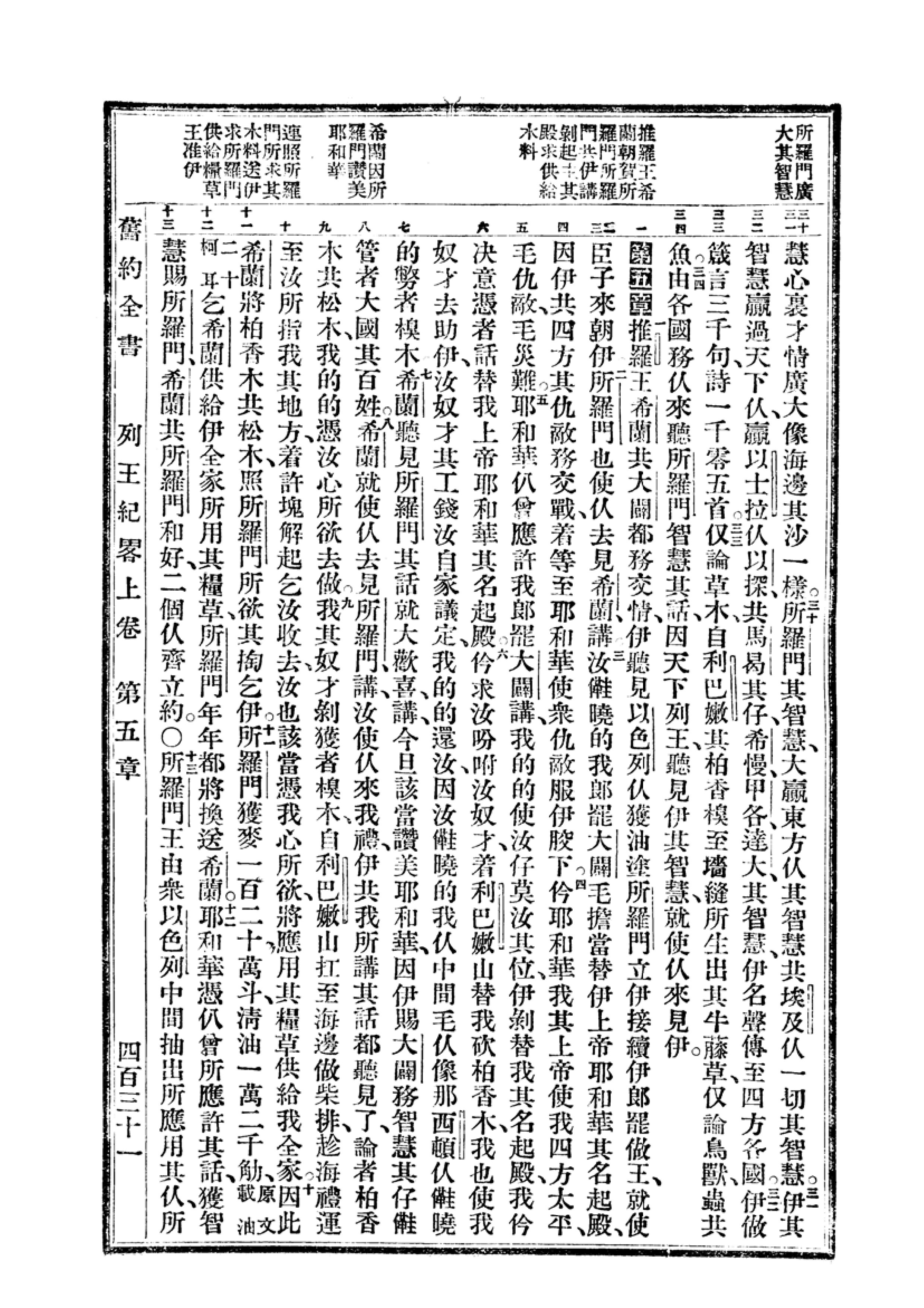 1940年福州土白《新舊約全書》 列王紀上 4 章 30 節到 5 章 13 節