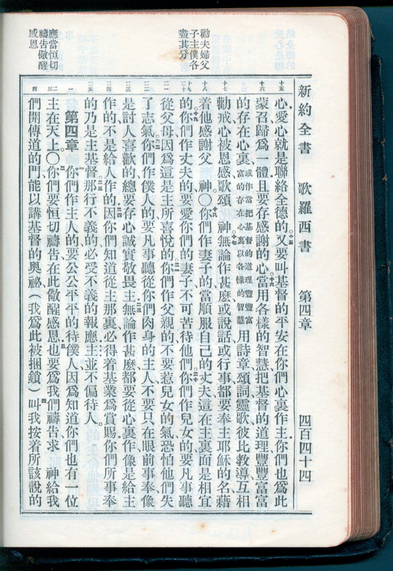 1934年新約全書(官話和合本) 歌羅西書 3 章 15 節到 4 章 4 節