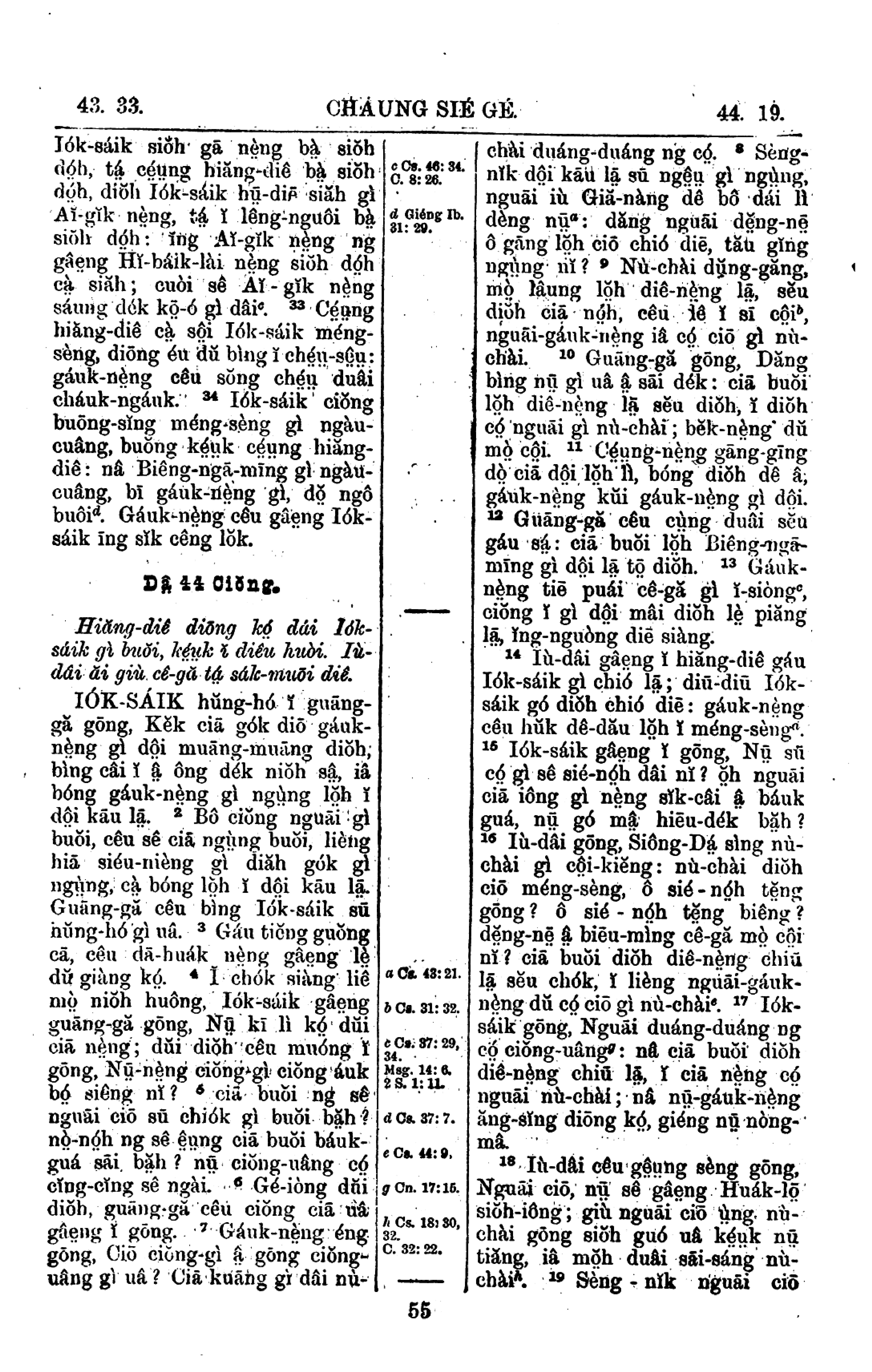 1908年新舊約全書 創世記 43 章 33 節到 44 章 19 節